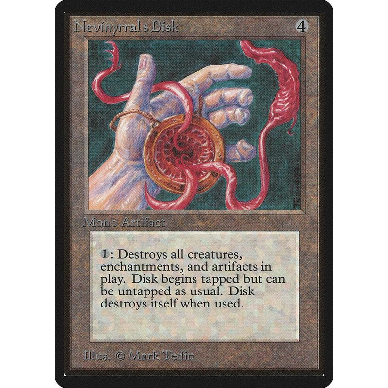 Ensemble: dition bta Taper: Artefact Raret: Rare Cot: {4} Le Disque de Nevinyrral arrive sur le champ de bataille engag. {1}, {T}: Dtruisez tous les artefacts, cratures et enchantements.
