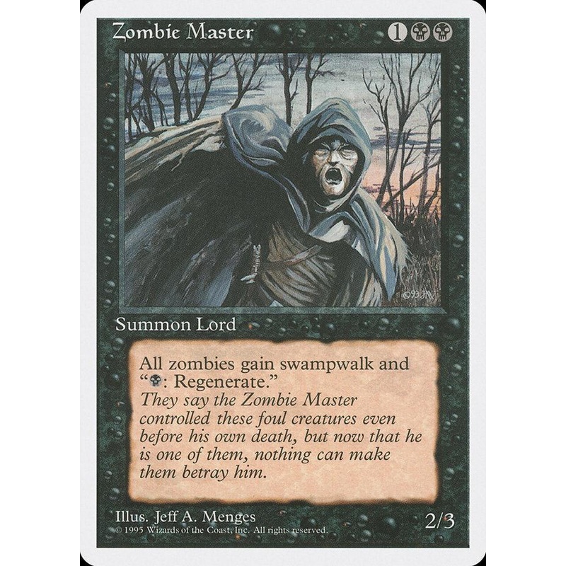 Other Zombies have “{B}: Regenerate this permanent.”They say the Zombie Master controlled these foul creatures even before his own death, but now that he is one of them, nothing can make them betray him.